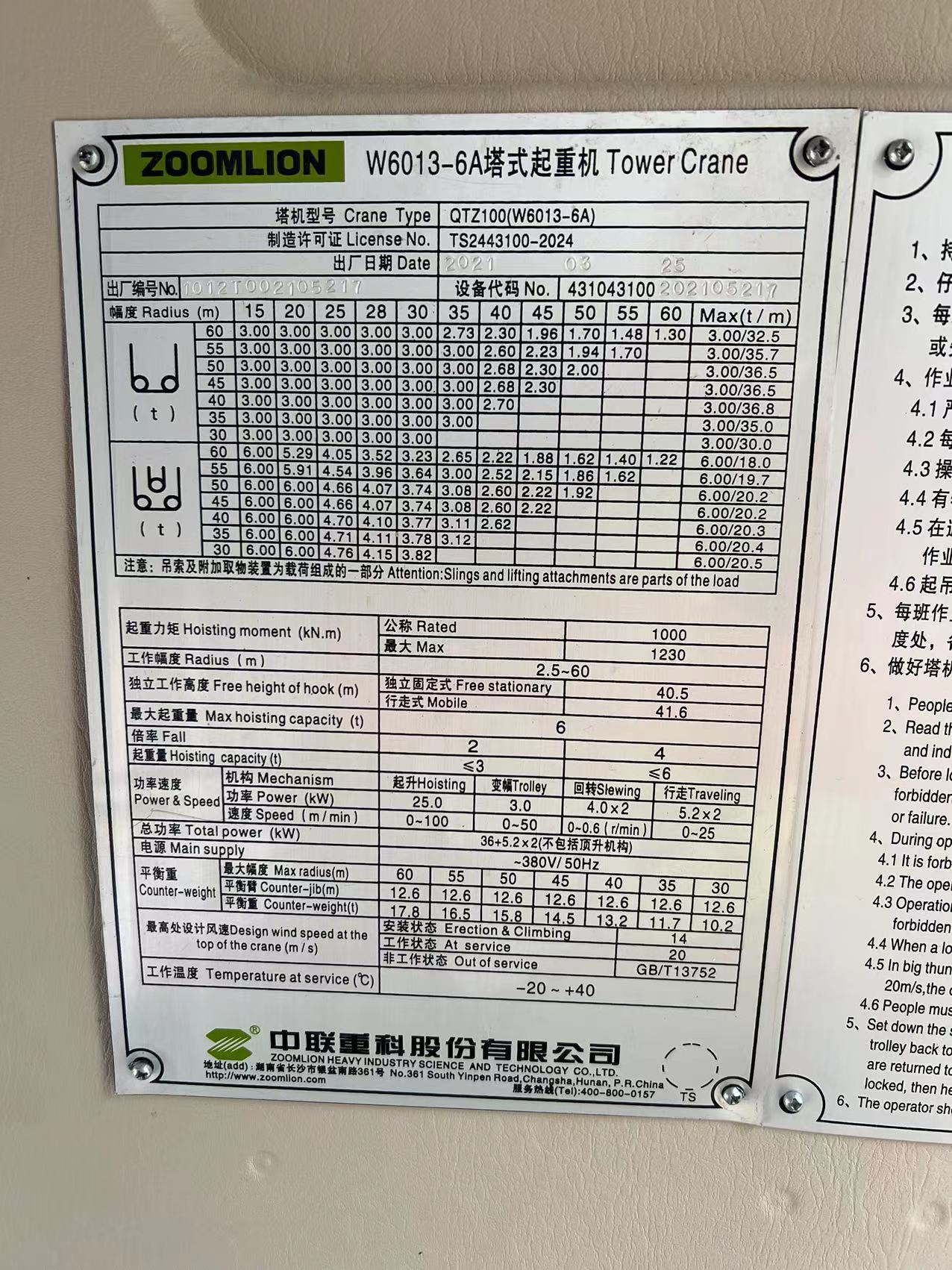 | 安装单位:河南安合起重设备安装有限公司 | |