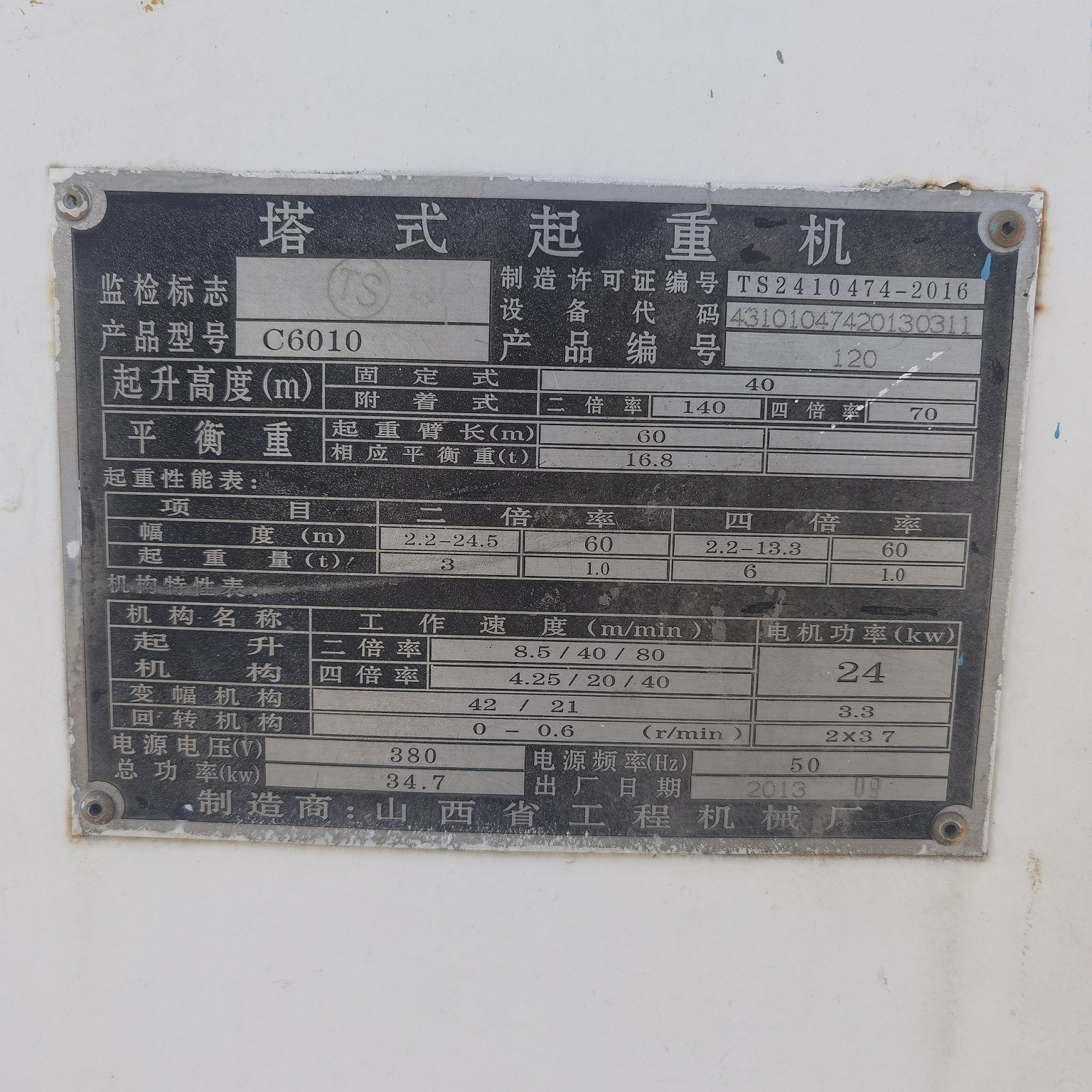 制造单位:山西省工程机械厂