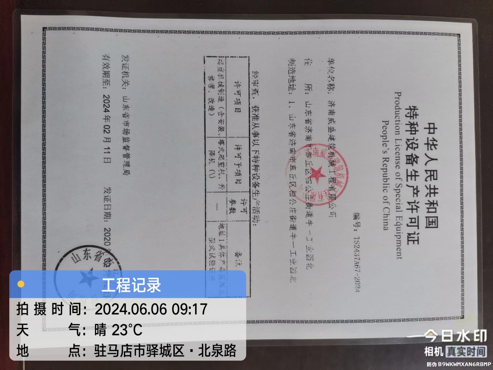 使用单位:河南益升建筑工程有限公司