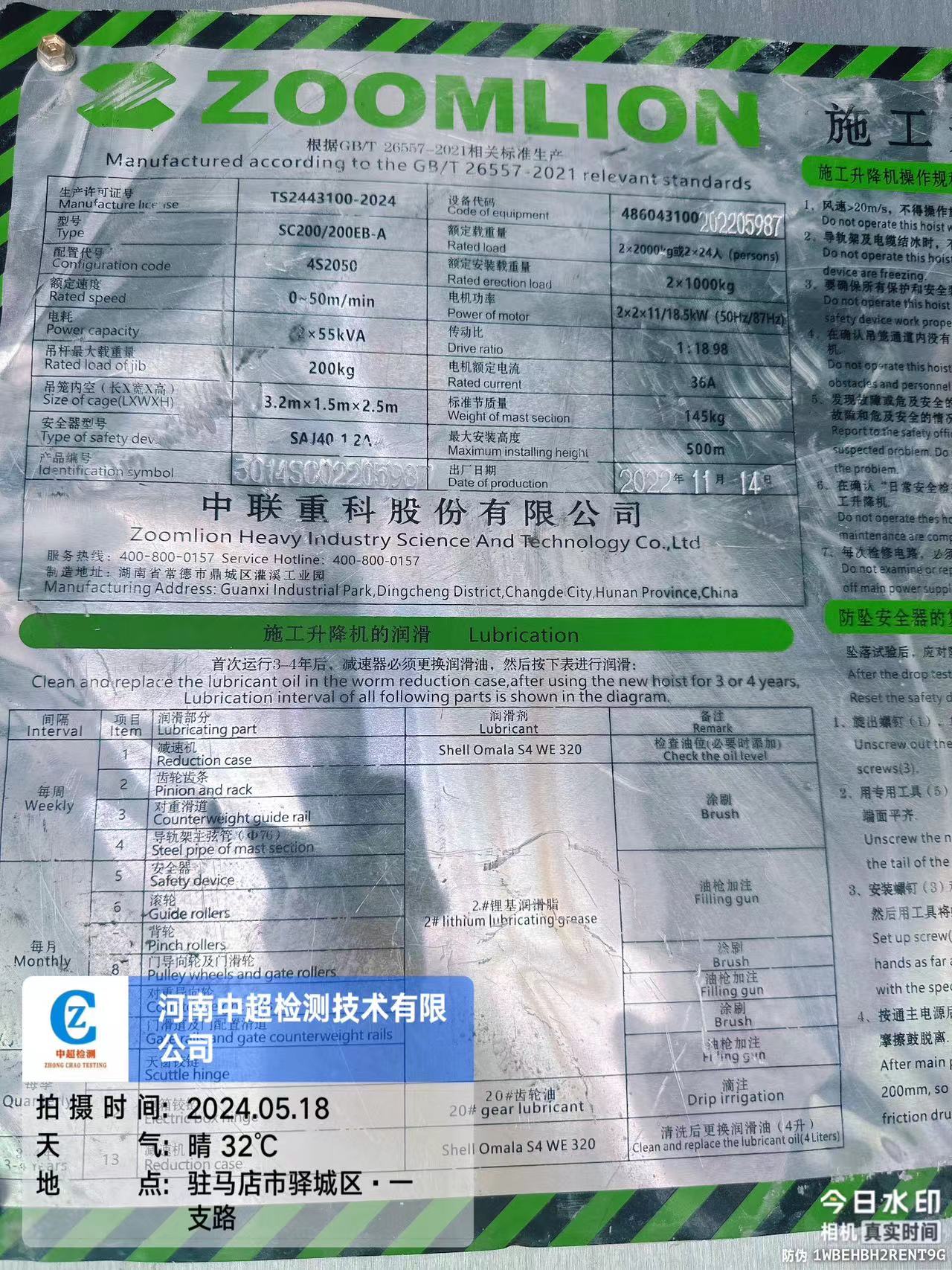 | 制造单位:中联重科股份有限公司 | |