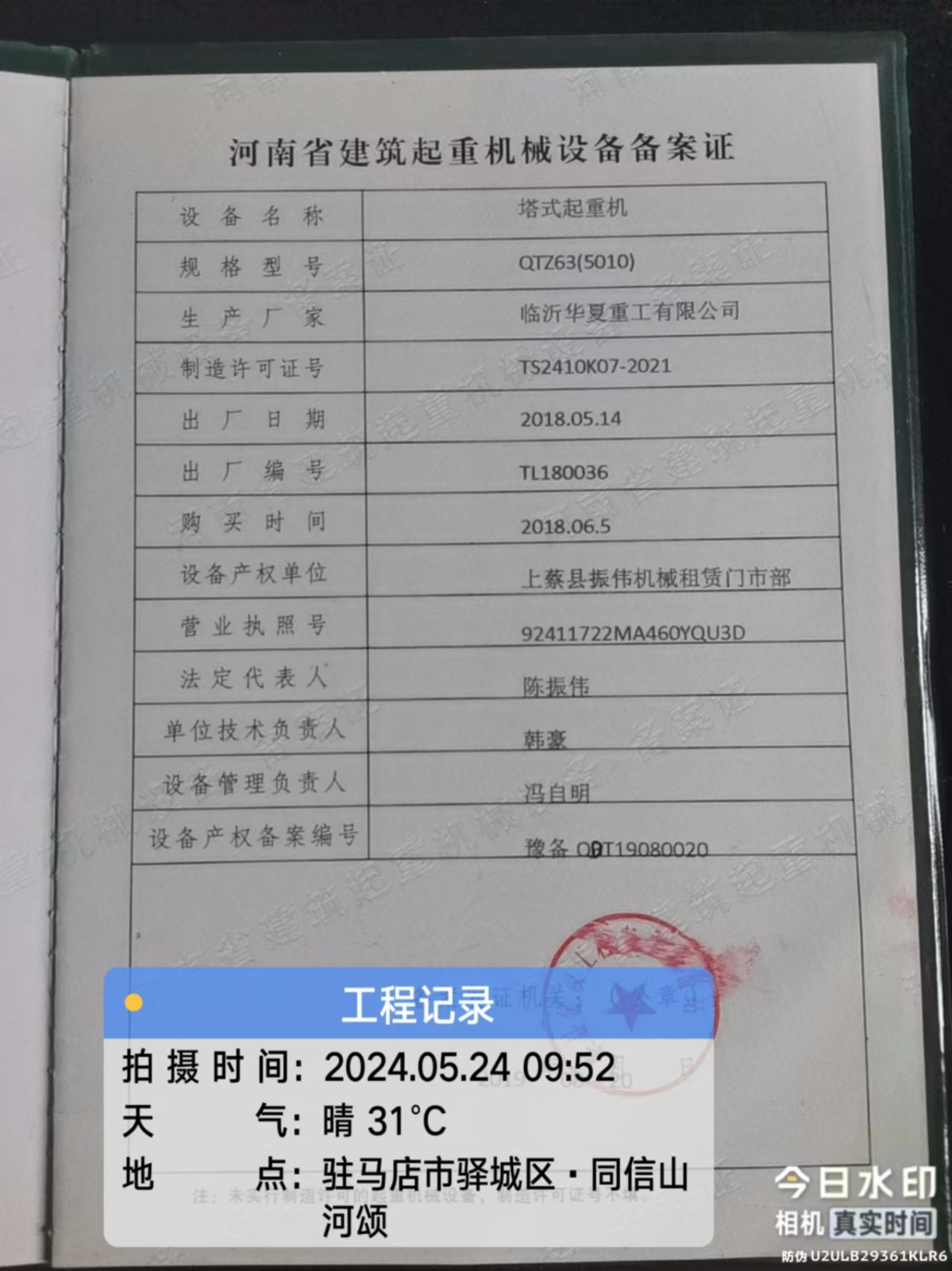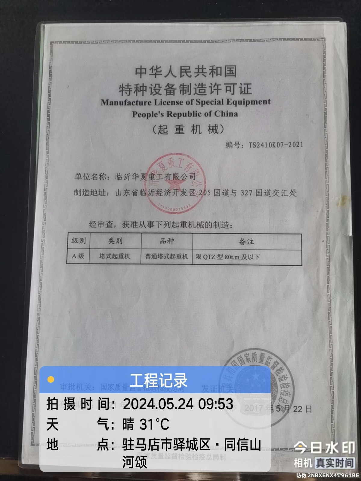 安装单位:驻马店市鸿诚起重设备租赁有限公司