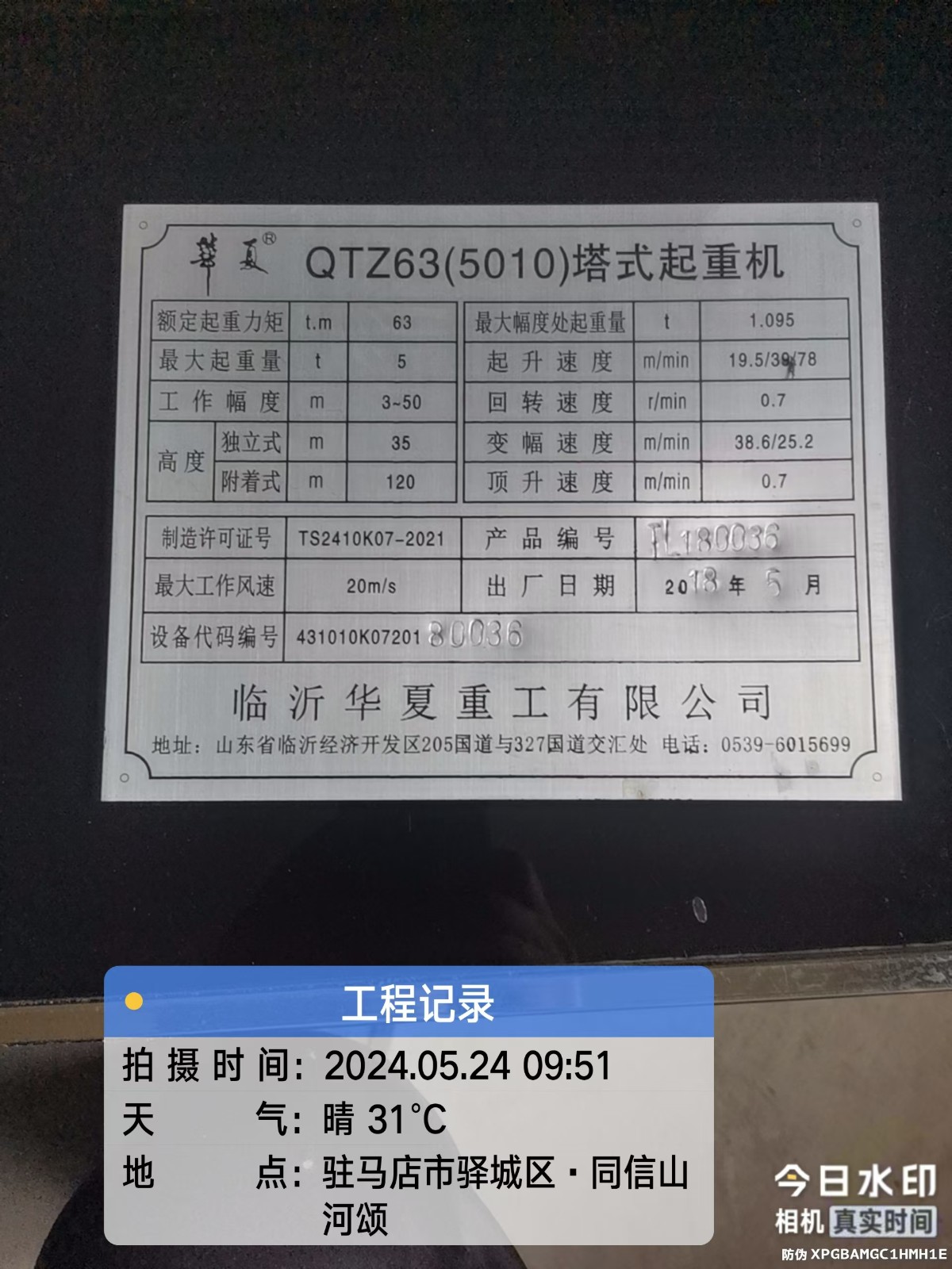 出厂编号:TL180036