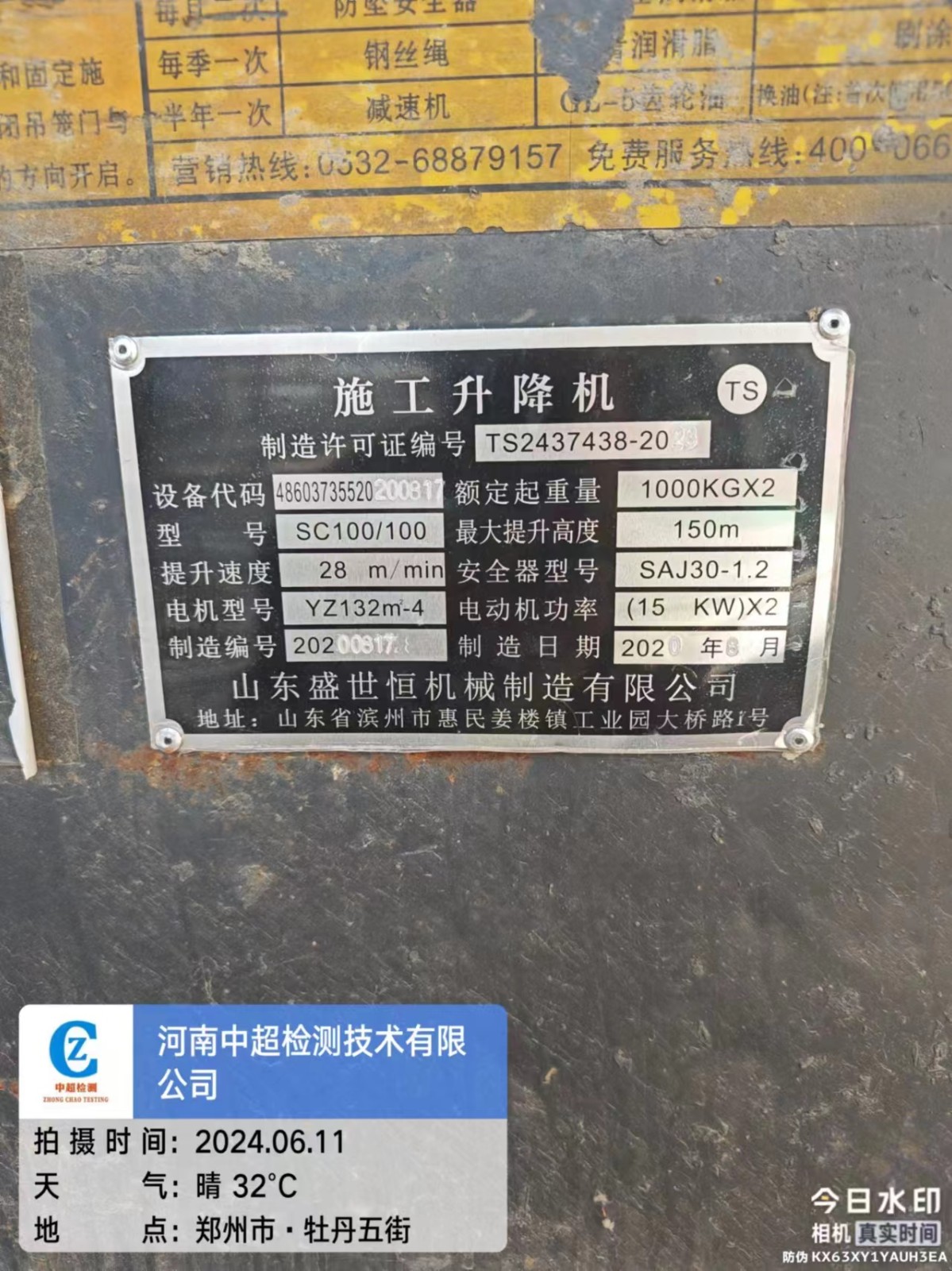 | 安装单位:郑州市乔锦机械设备租赁有限公司 | |