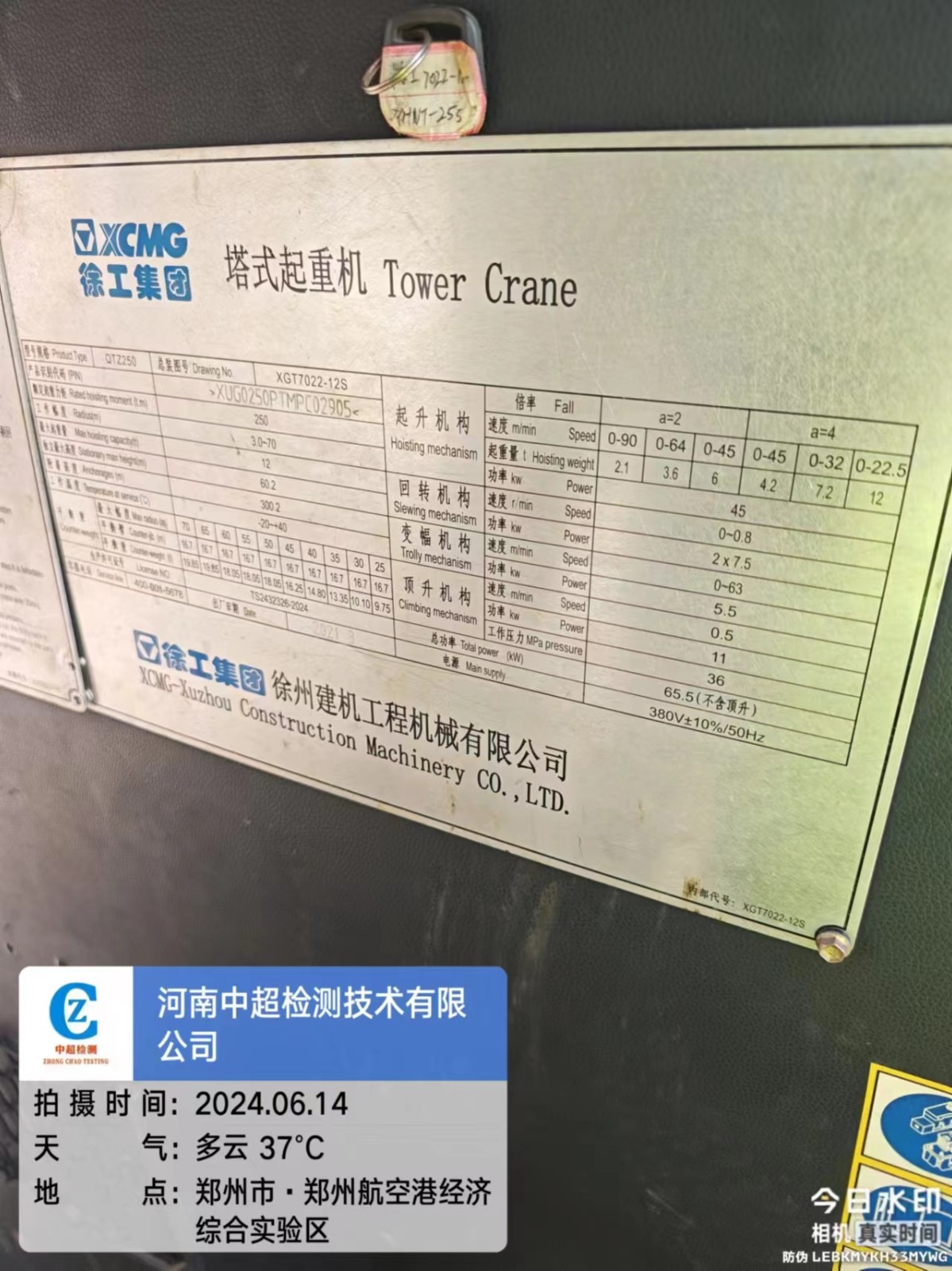 | 工程名称:郑州航空港高铁配套项目2号地块工程总承包(EPC)项目2号塔机 | |