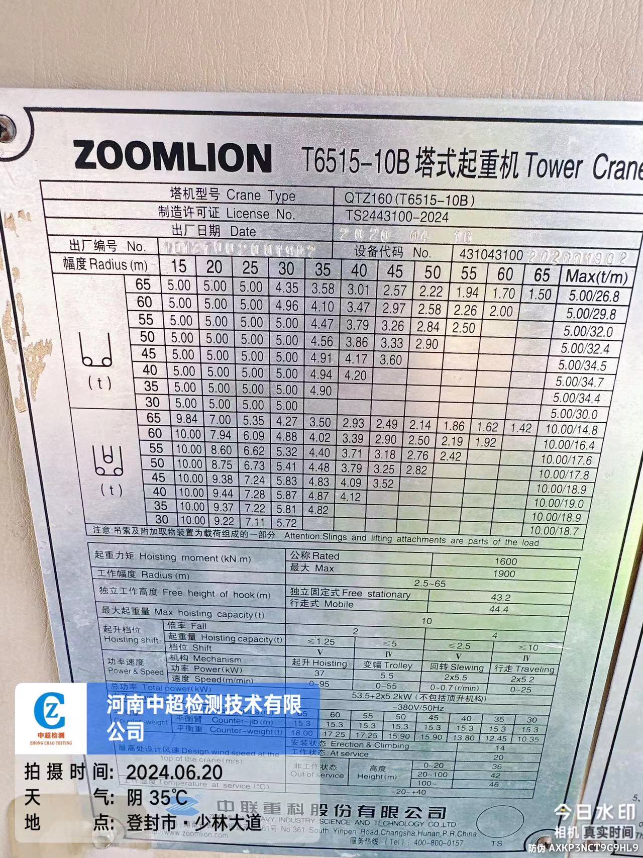 | 工程名称:登封市总医院暨公卫应急救治中心建设项目-公卫应急救治中心2#塔吊 | |