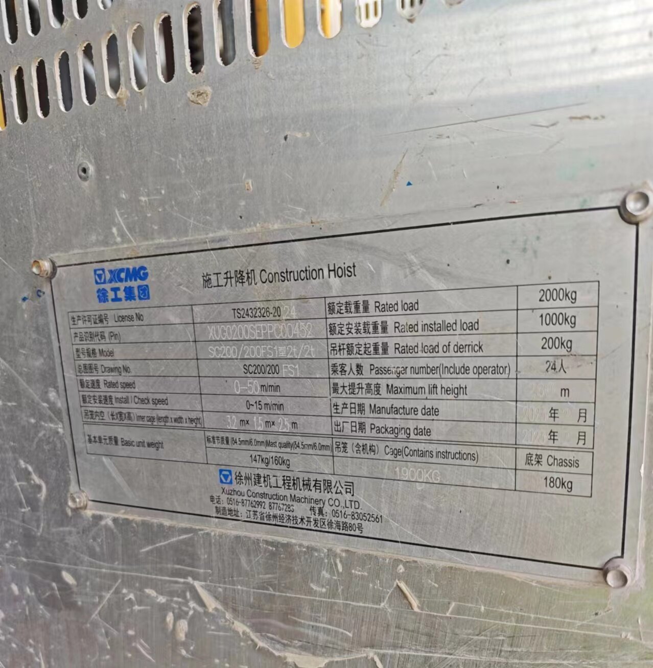 | 出厂编号:XUG0200SEPPC00452 | |