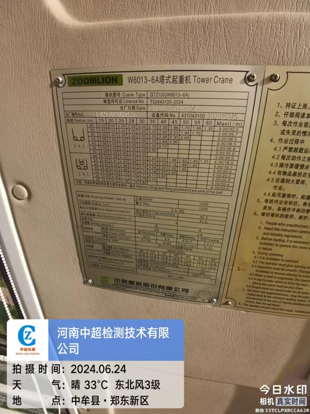 | 工程名称:河南信息统计职业学院新校区建设项目二期(统计与大数据产教融合实训基地项目)1#塔吊 | |