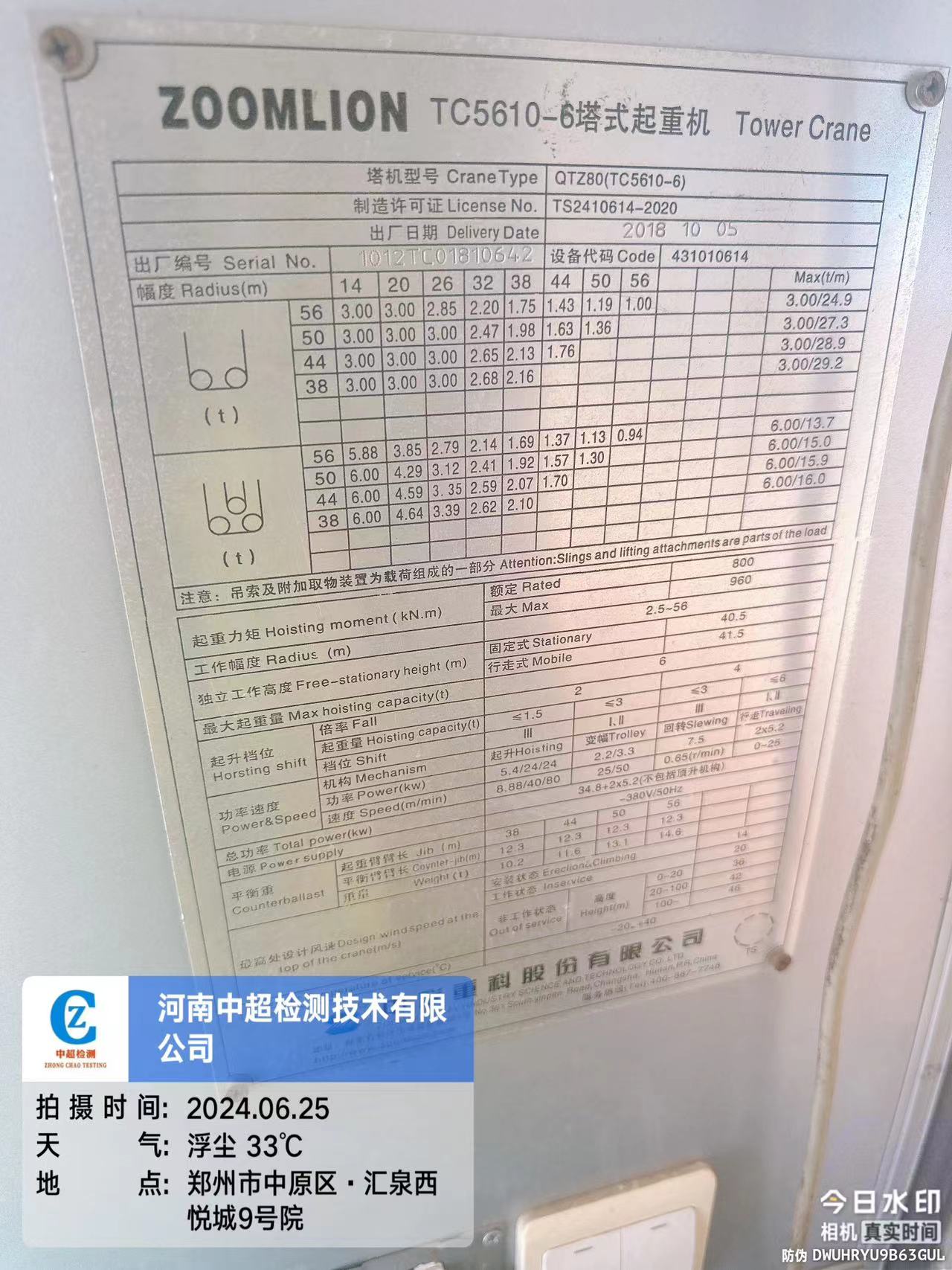 制造单位:中联重科股份有限公司