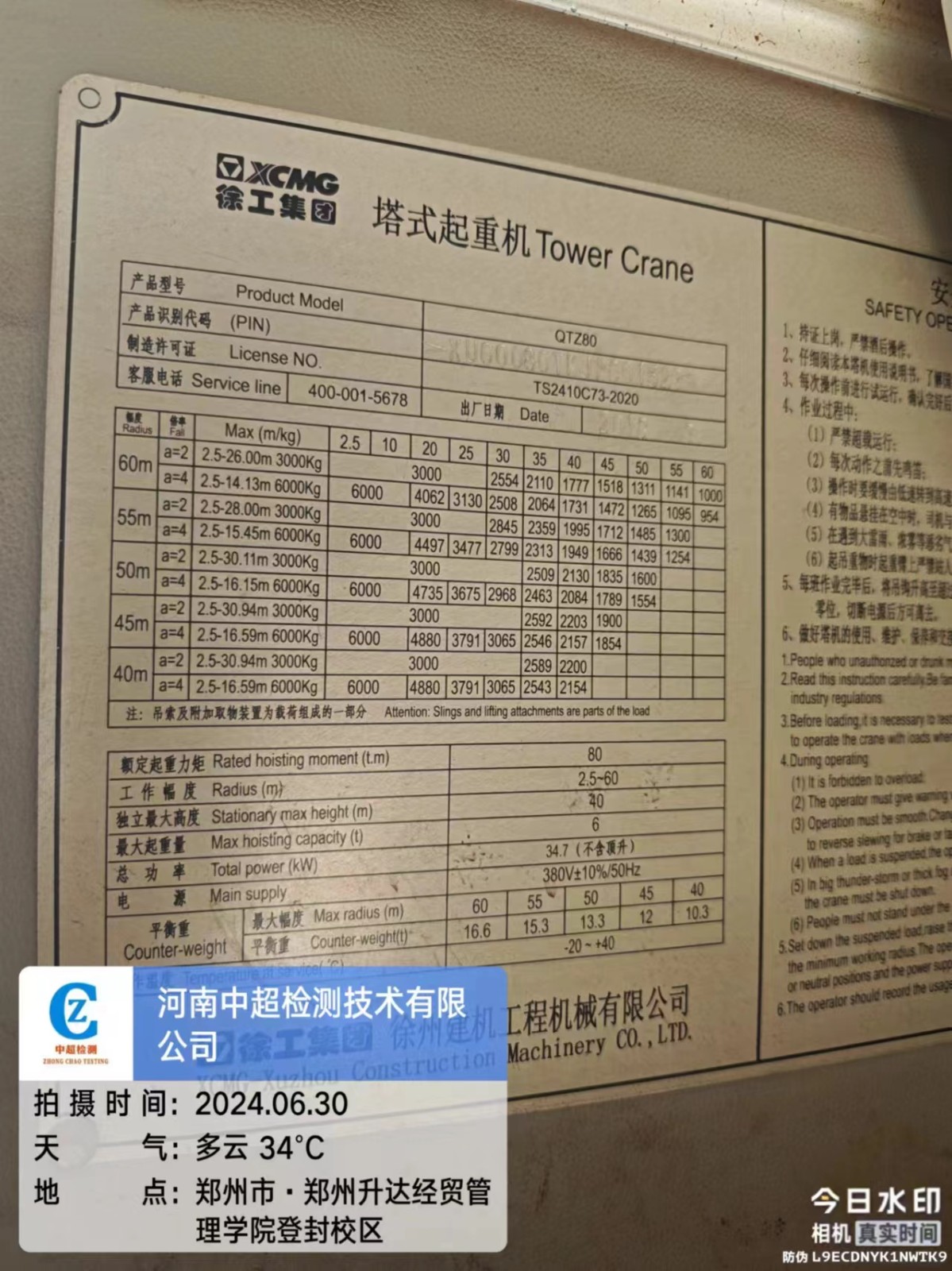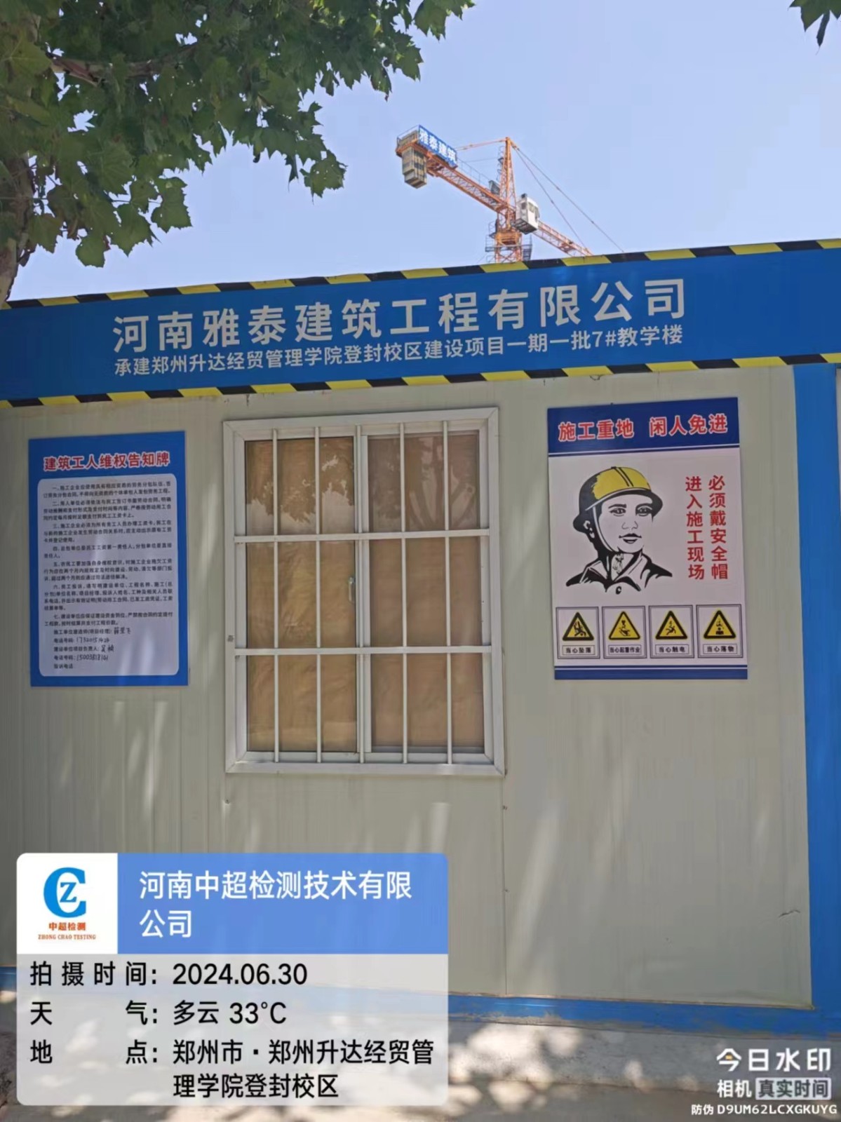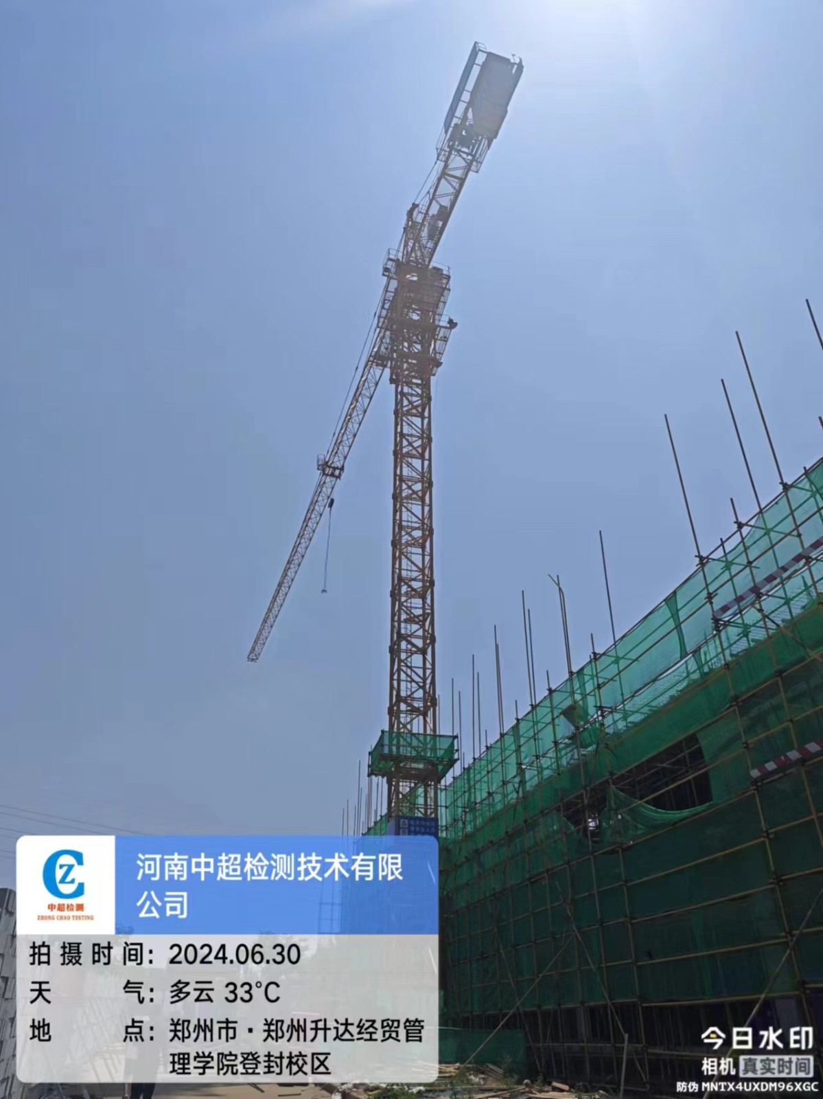 | 工程名称:郑州升达经贸管理学院登封校区建设项目7#教学楼1号塔 | |