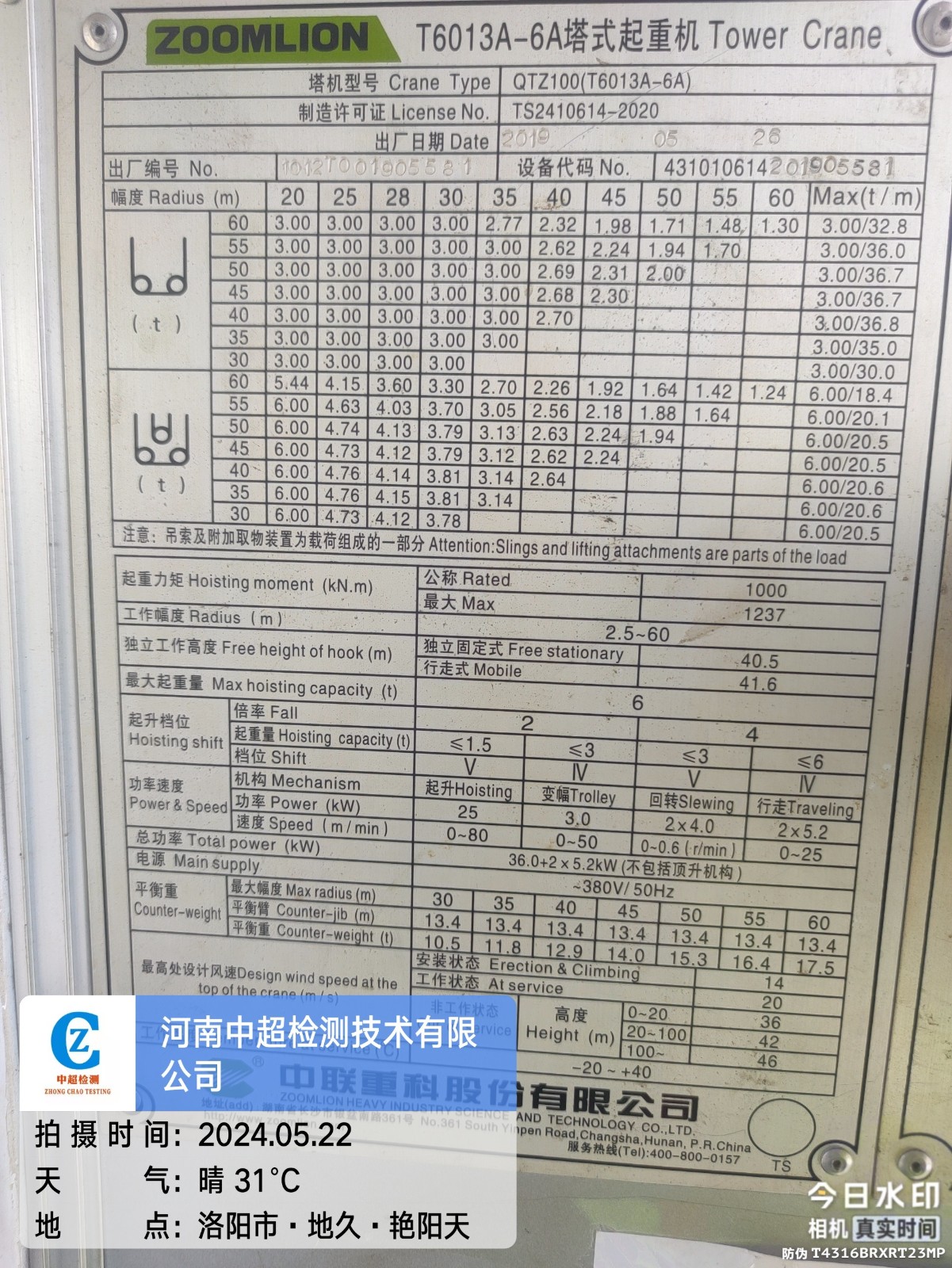 塔式起重机检测