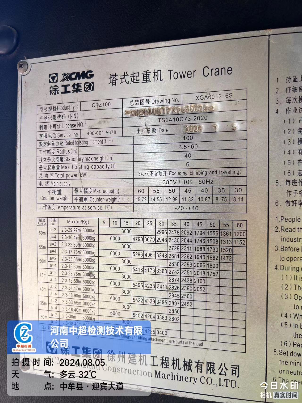 | 出厂编号:XUG0100TPKPC50079 | |