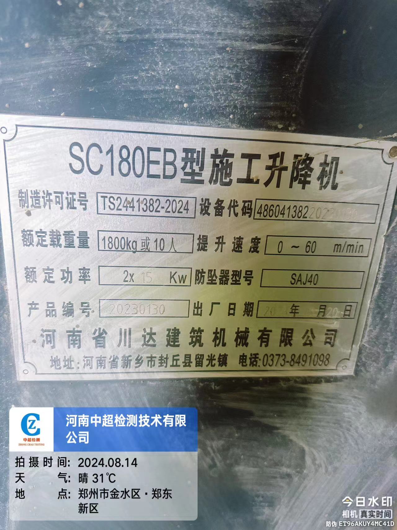 | 安装单位:河南省川达起重机械有限公司 | |