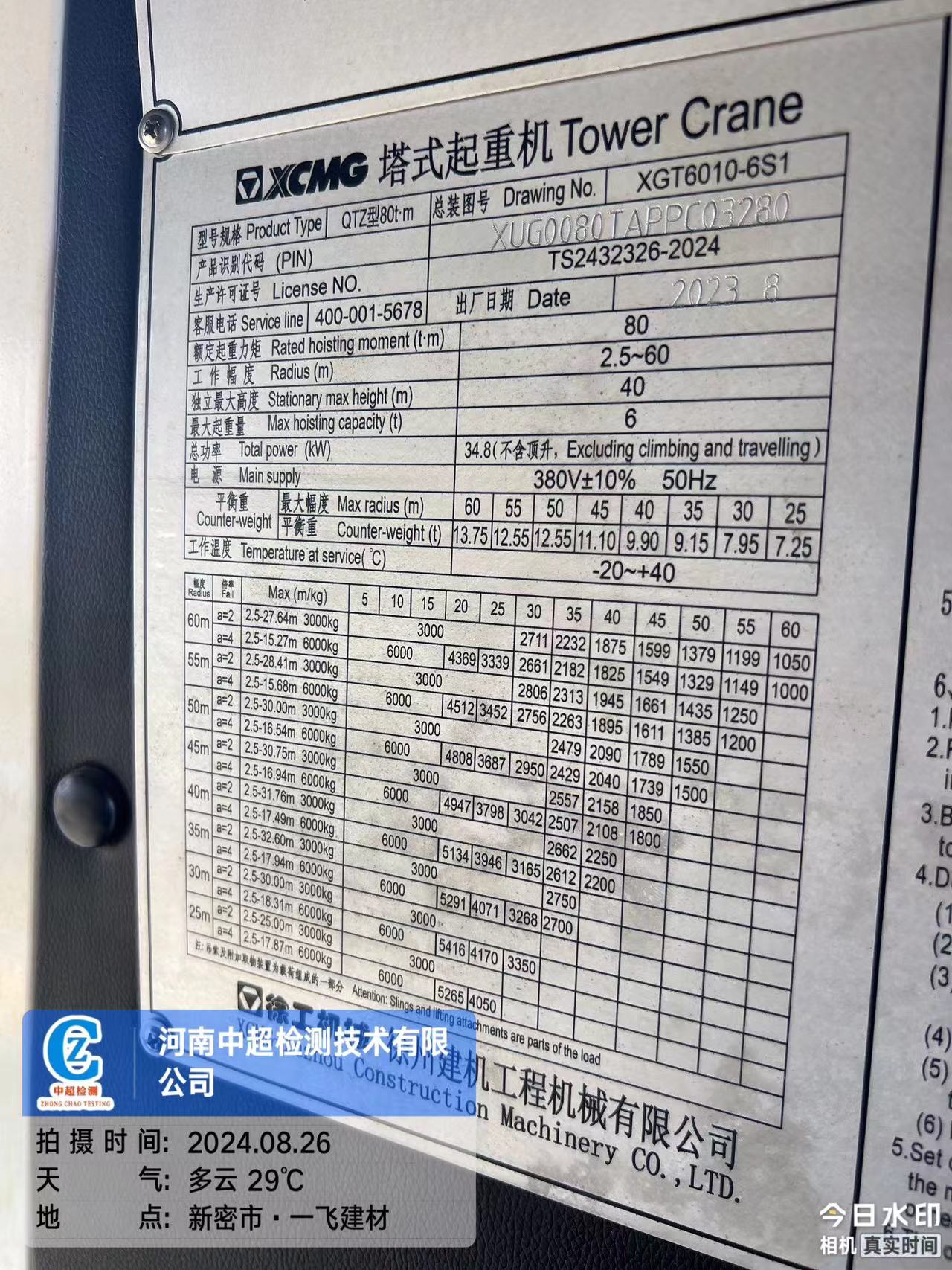 | 出厂编号:XUG0080TAPPC03280 | |