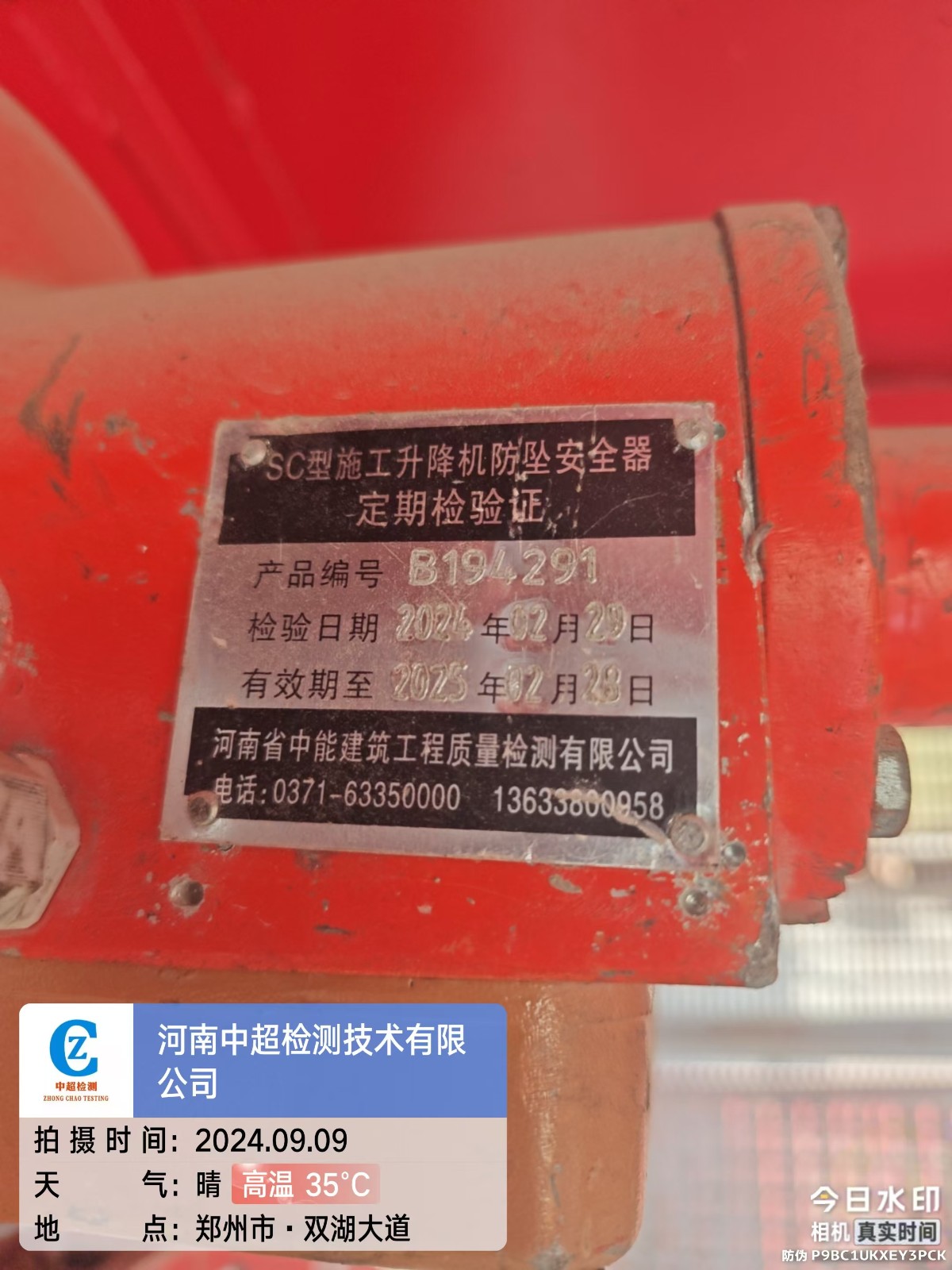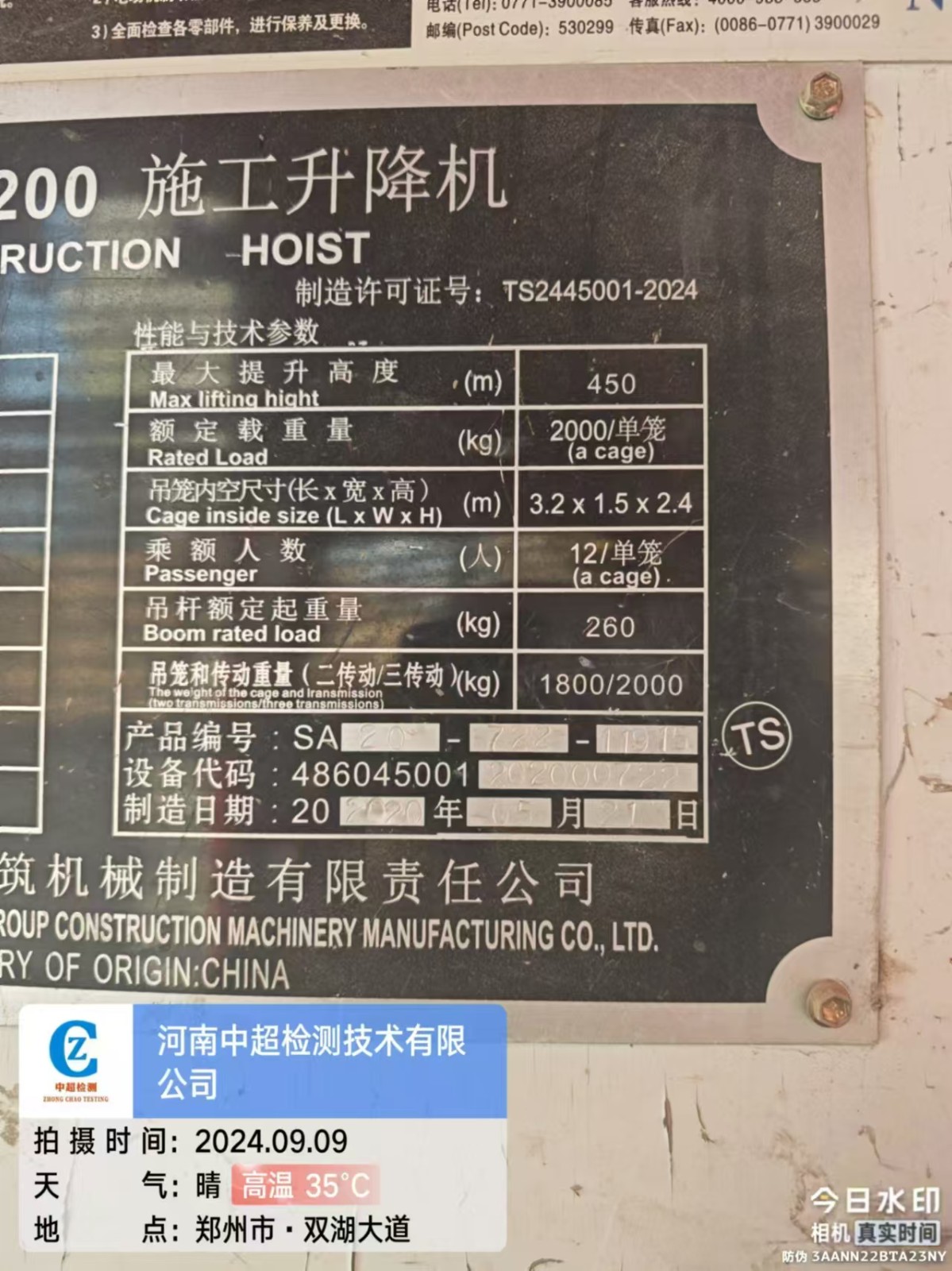 | 安装单位:郑州市鸿泰建筑设备租赁有限公司 | |
