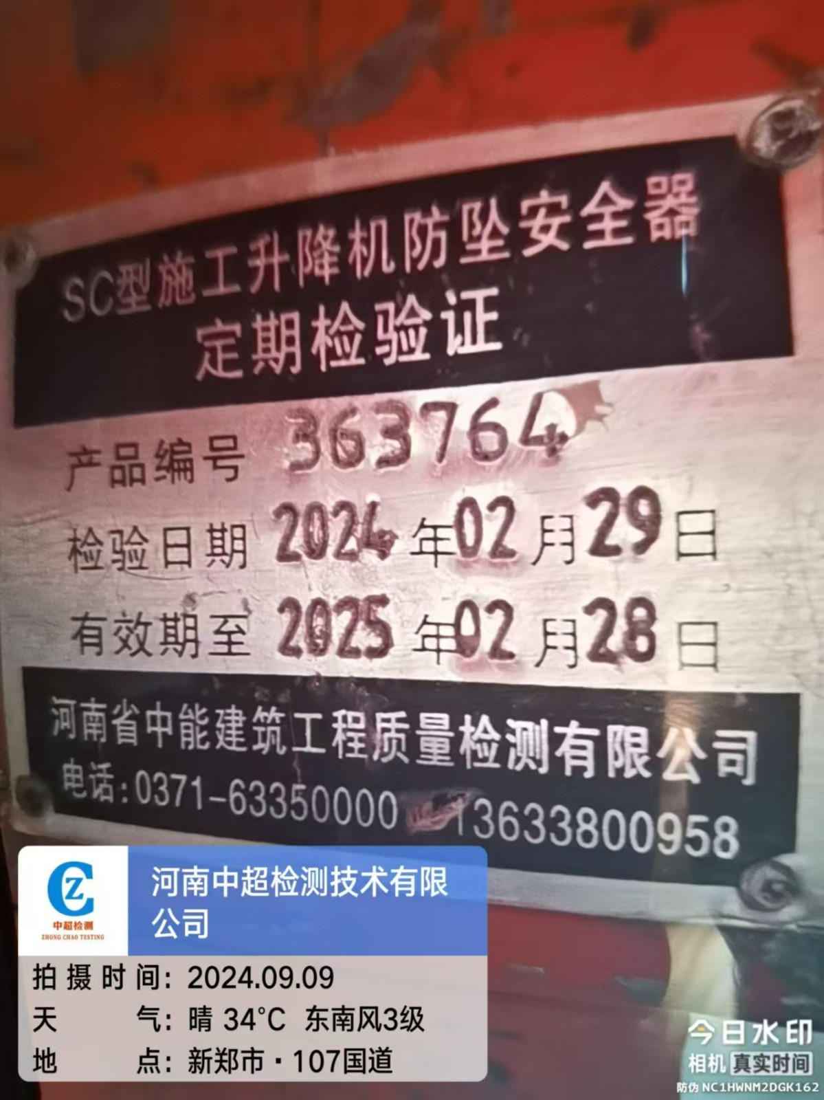 安装单位:郑州市鸿泰建筑设备租赁有限公司