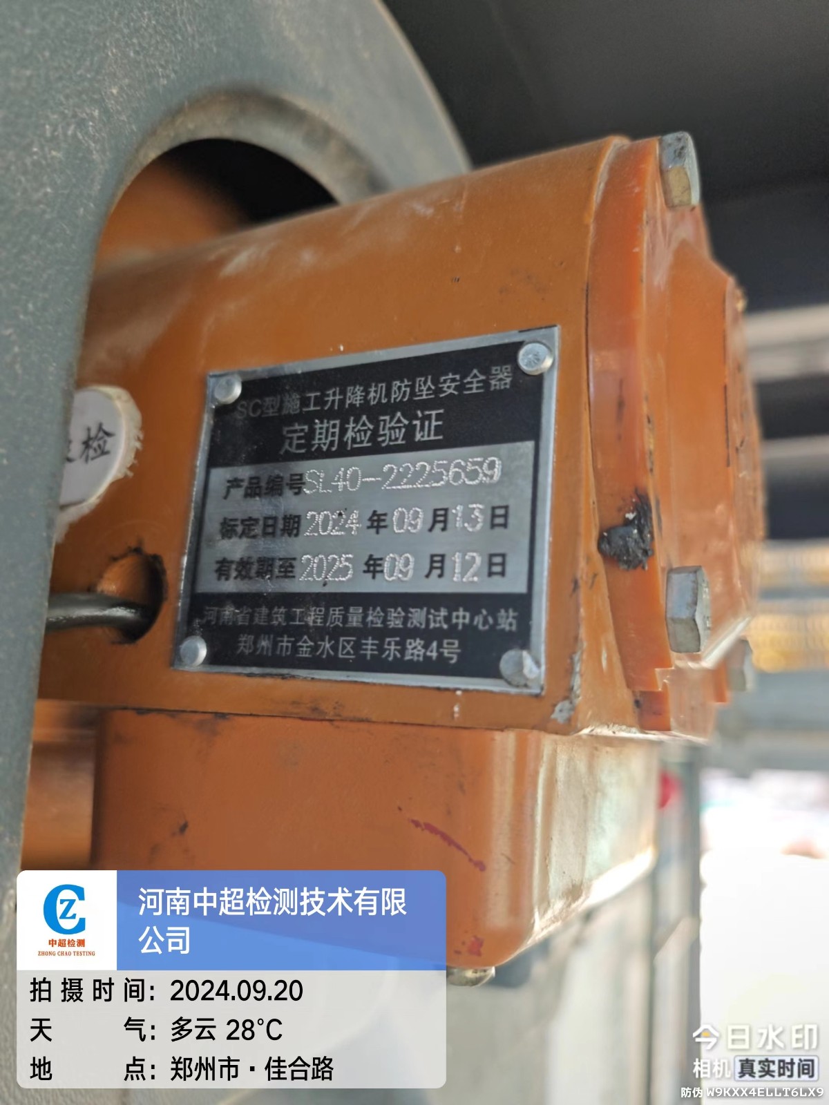 | 使用单位:郑州一建集团有限公司 | |