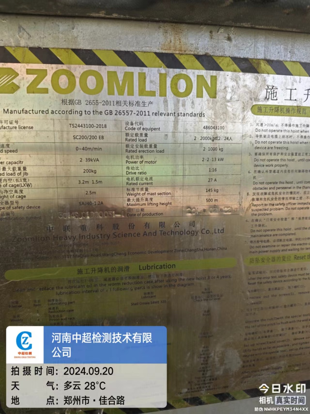 | 安装单位:河南荣源建筑机械设备有限公司 | |