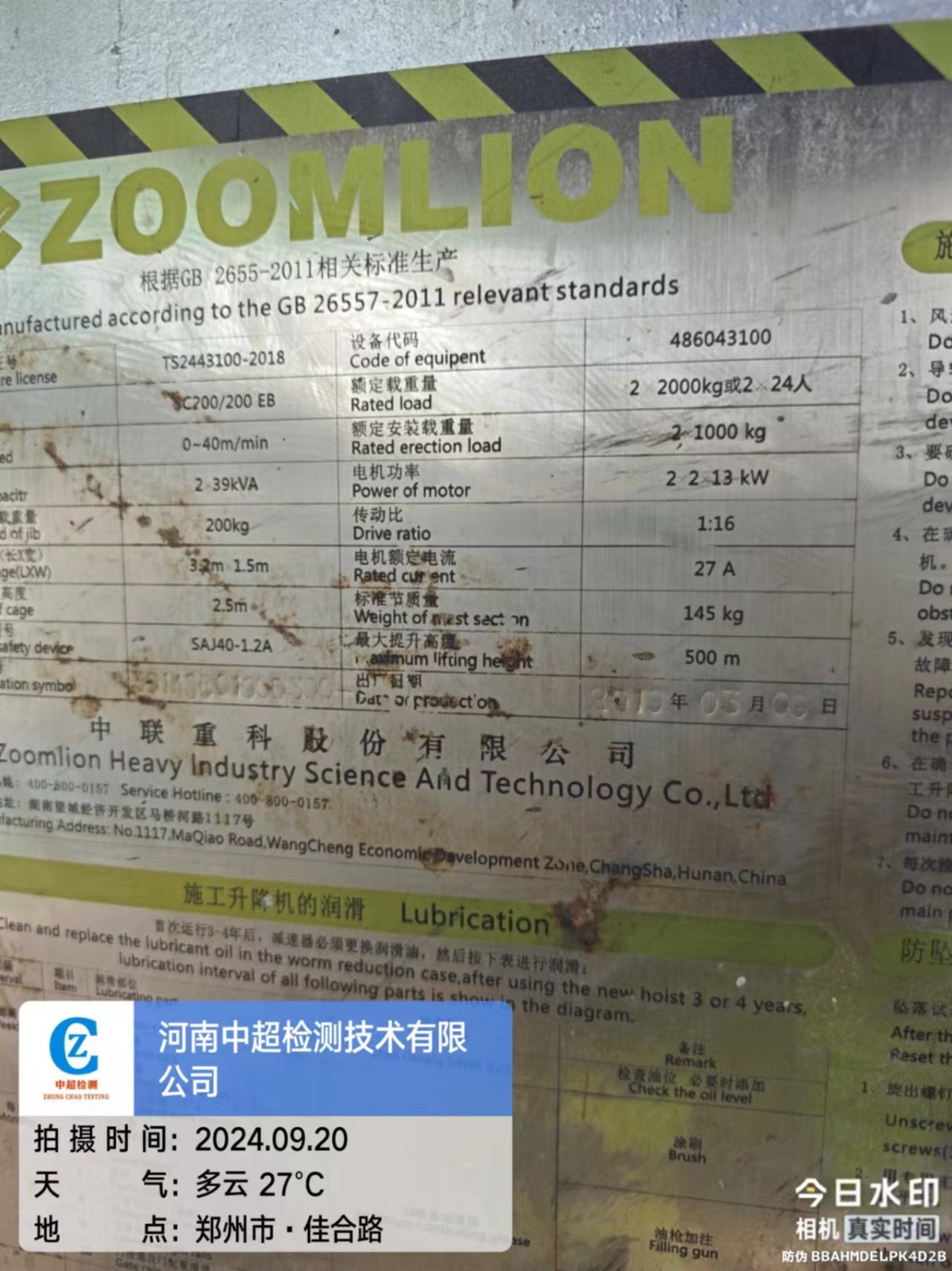 | 安装单位:河南荣源建筑机械设备有限公司 | |