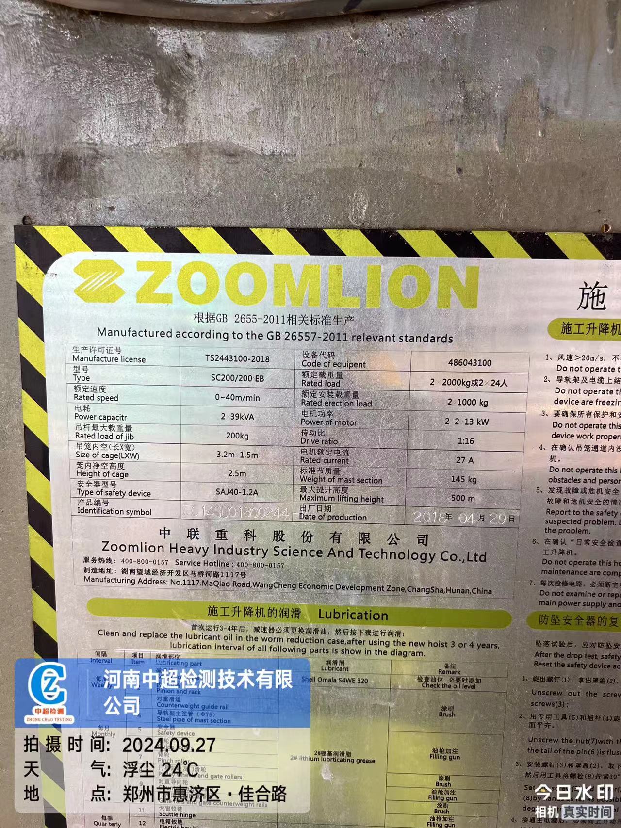| 安装单位:河南荣源建筑机械设备有限公司 | |