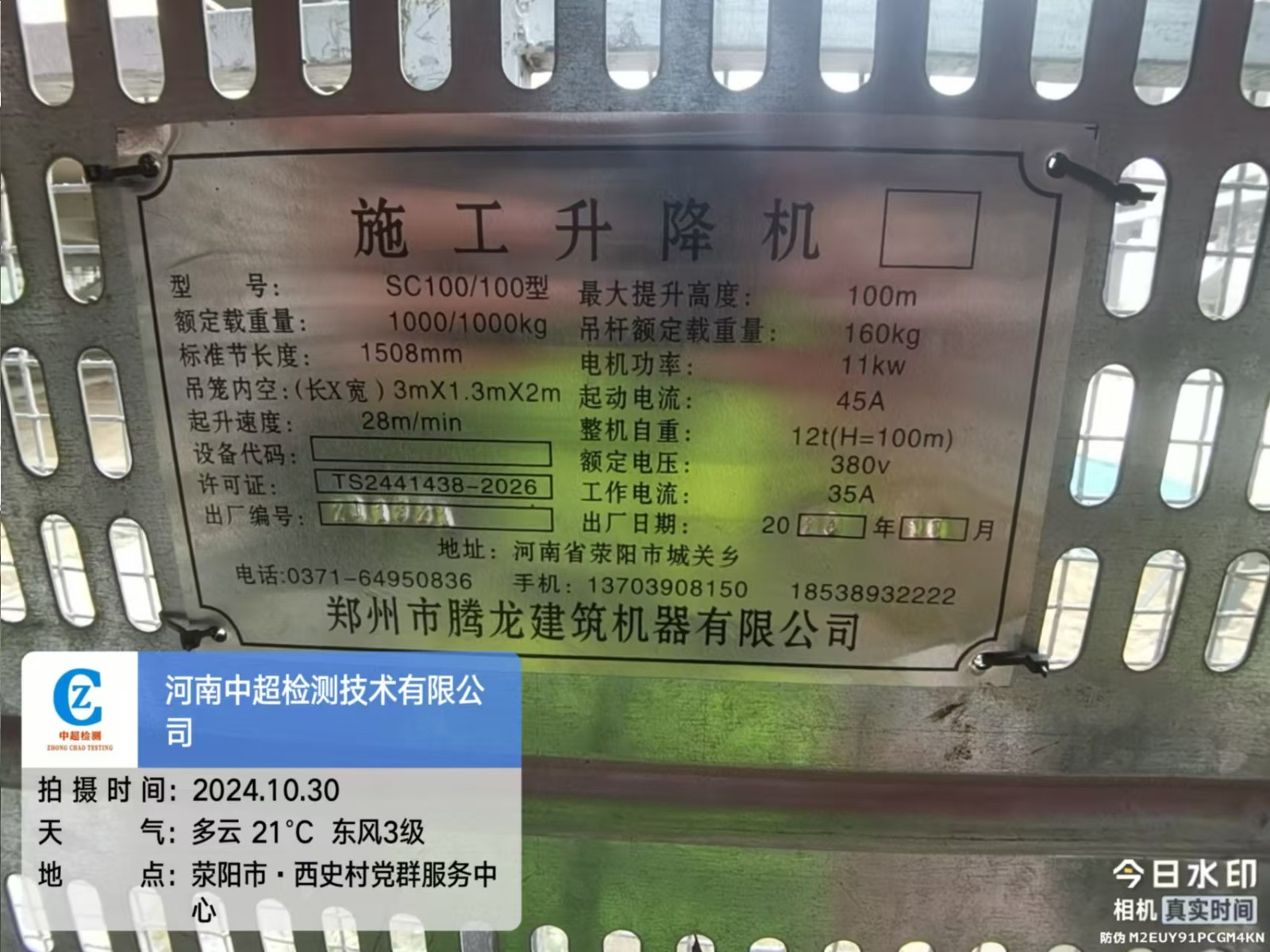 | 安装单位:郑州昱捷建筑机械租赁有限公司 | |