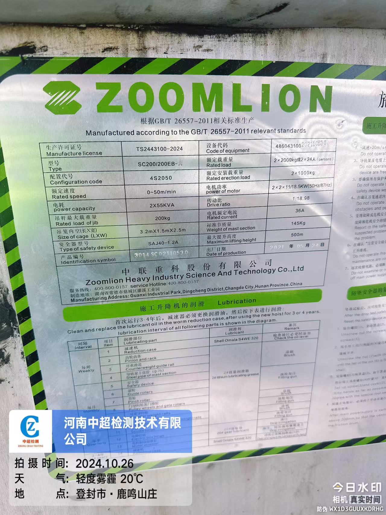 | 制造单位:中联重科股份有限公司 | |