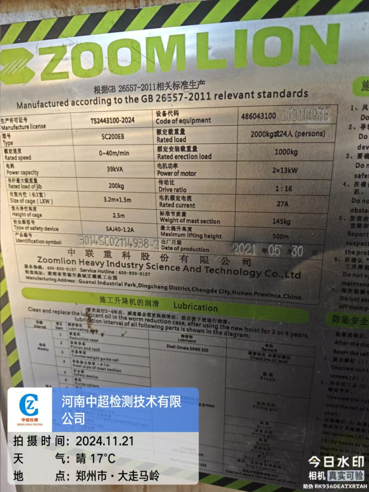 | 制造单位:中联重科股份有限公司 | |