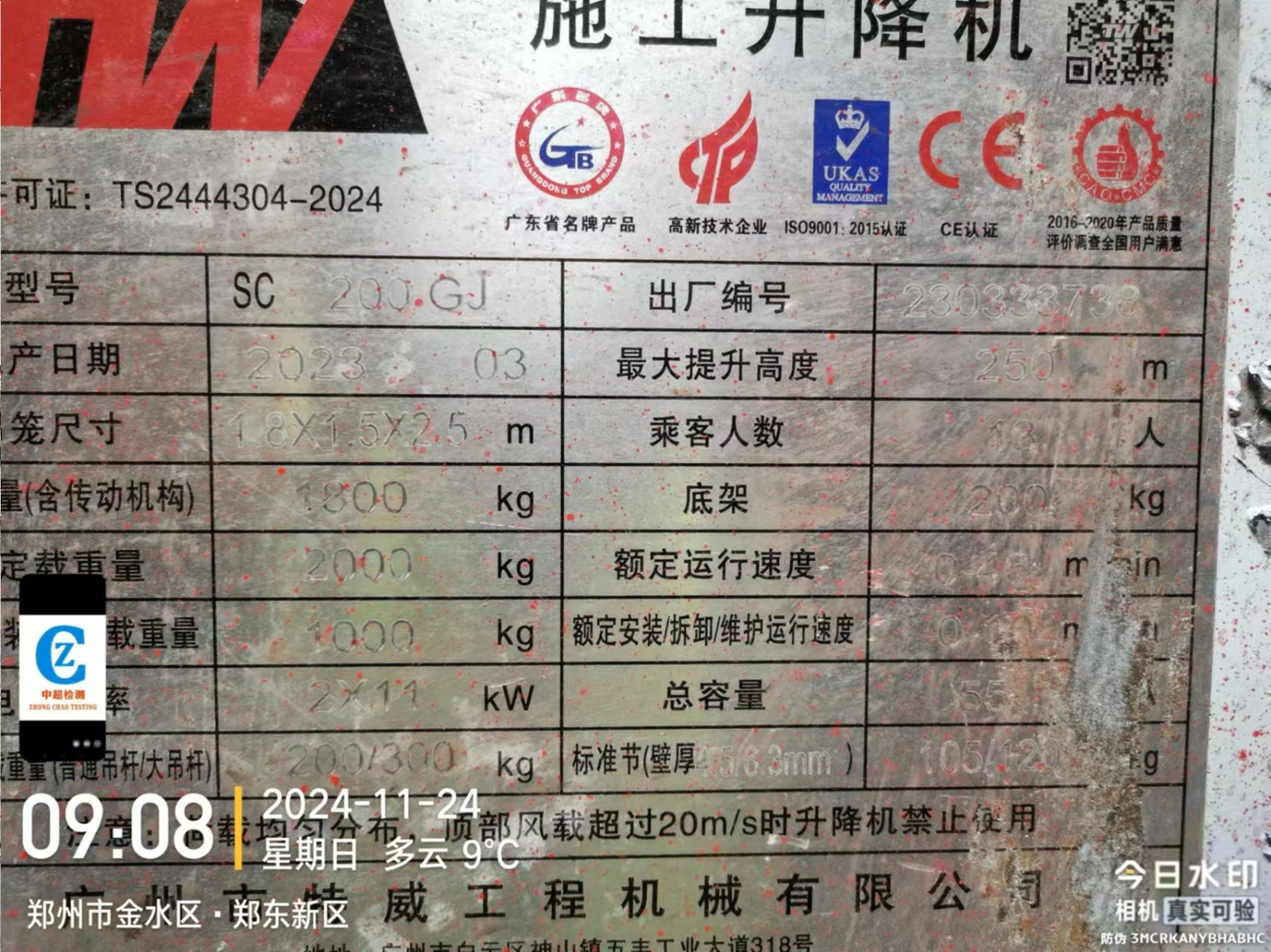 | 安装单位:郑州市鸿泰建筑设备租赁有限公司 | |