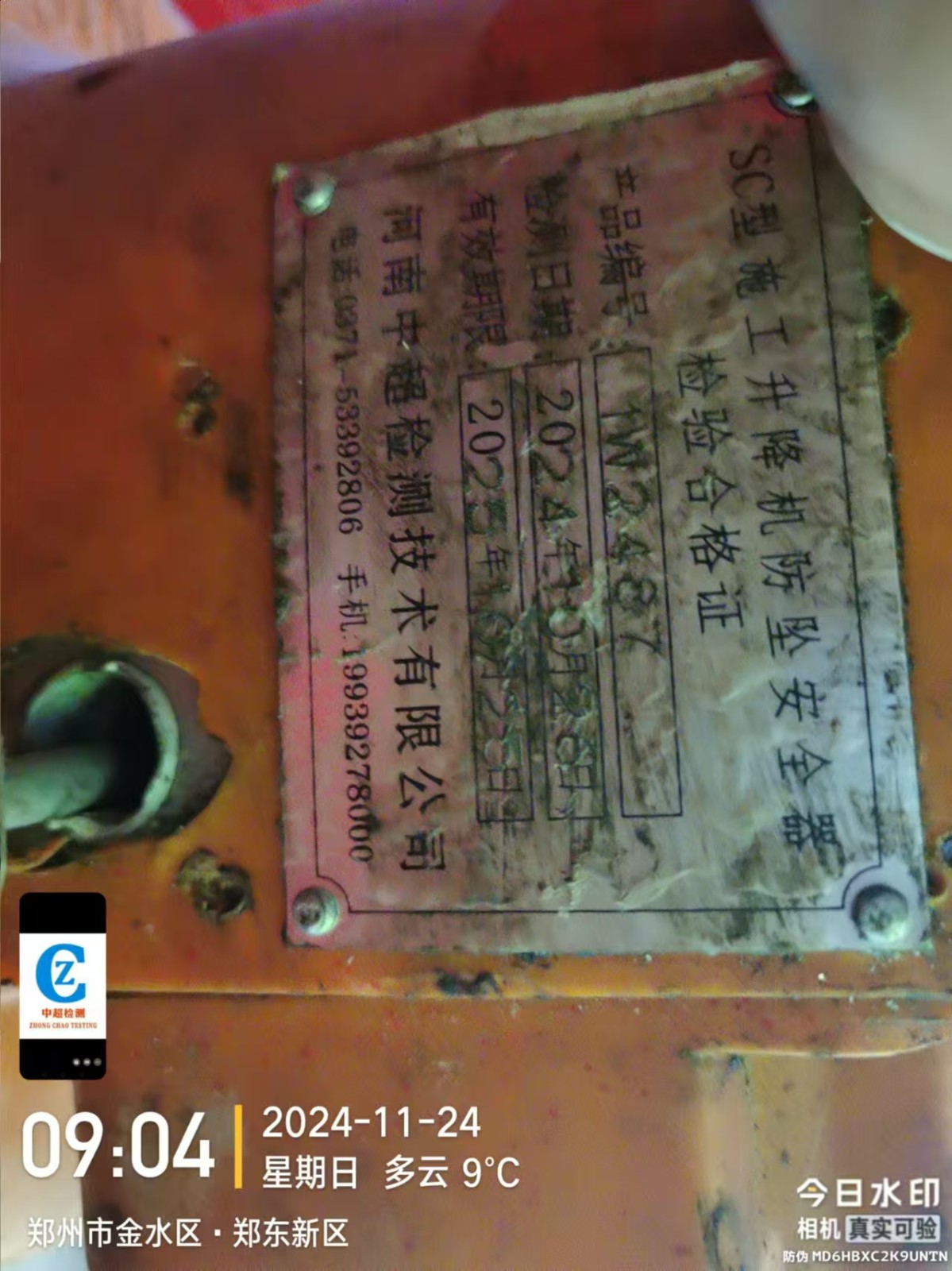 | 安装单位:郑州市鸿泰建筑设备租赁有限公司 | |