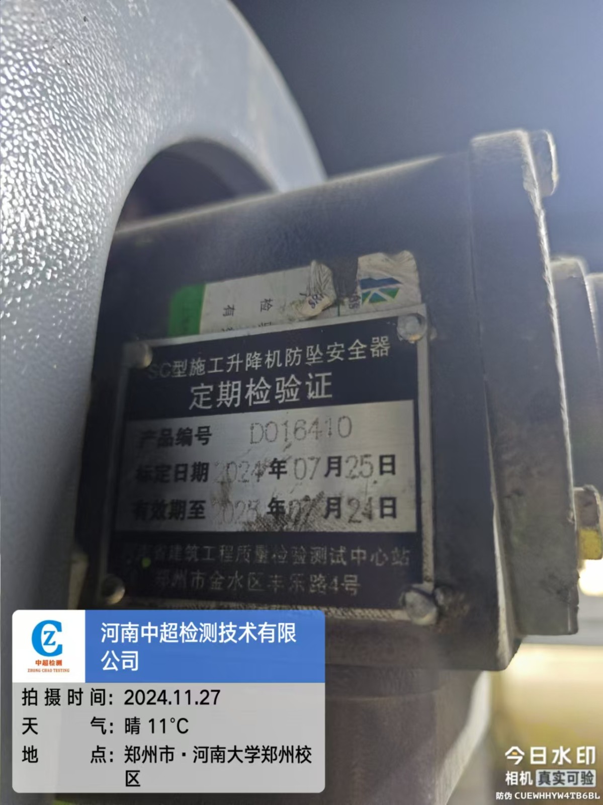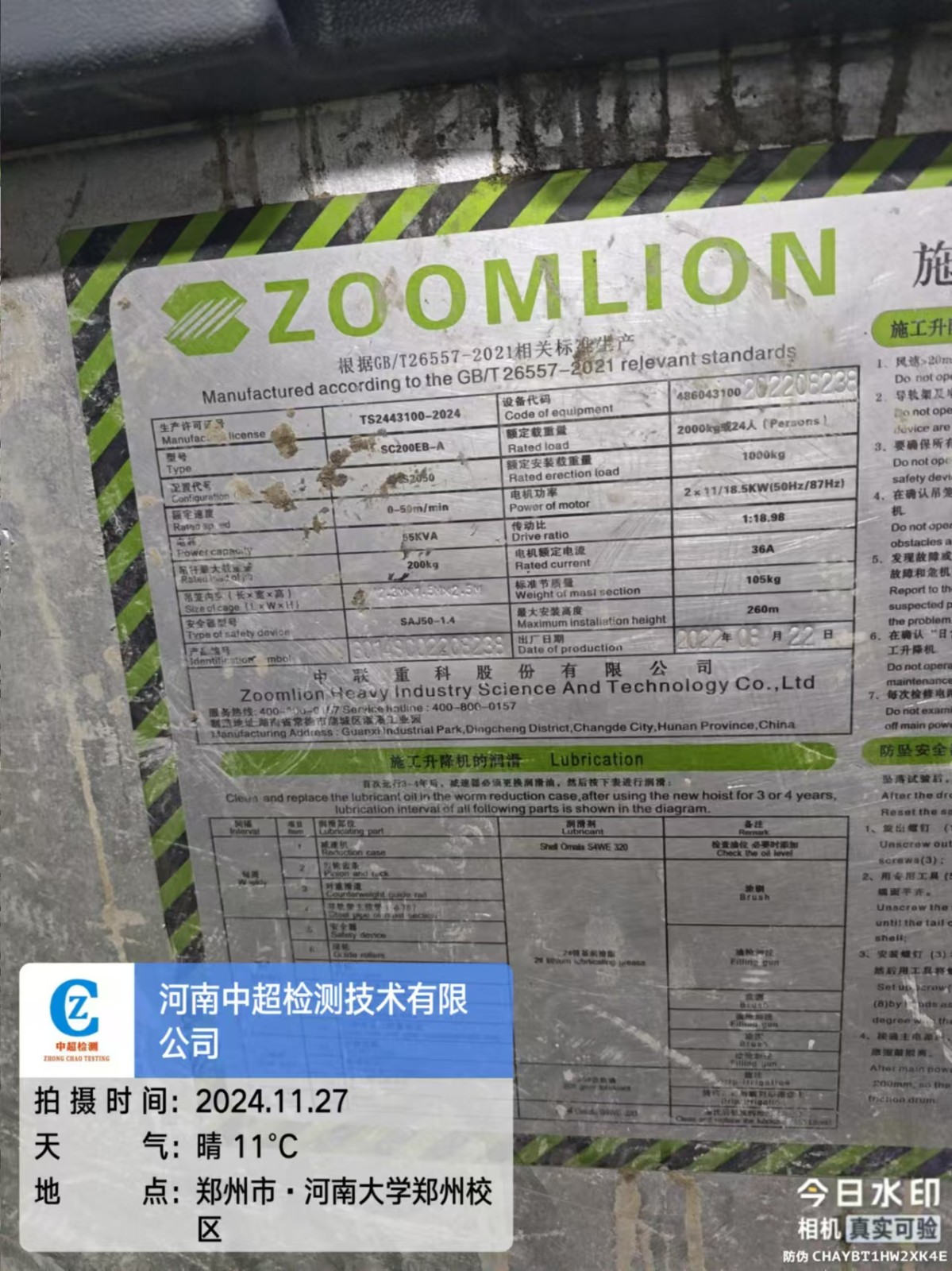| 工程名称:河南大学图书综合楼施工总承包项目1#施工升降机 | |