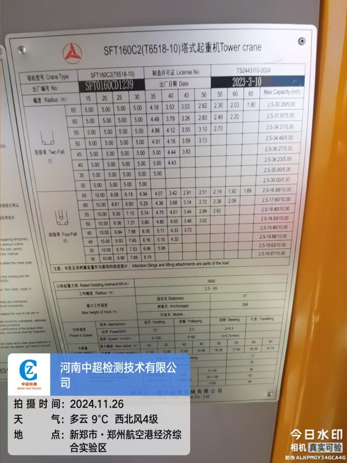 | 出厂编号:SFT0160CD1239 | |