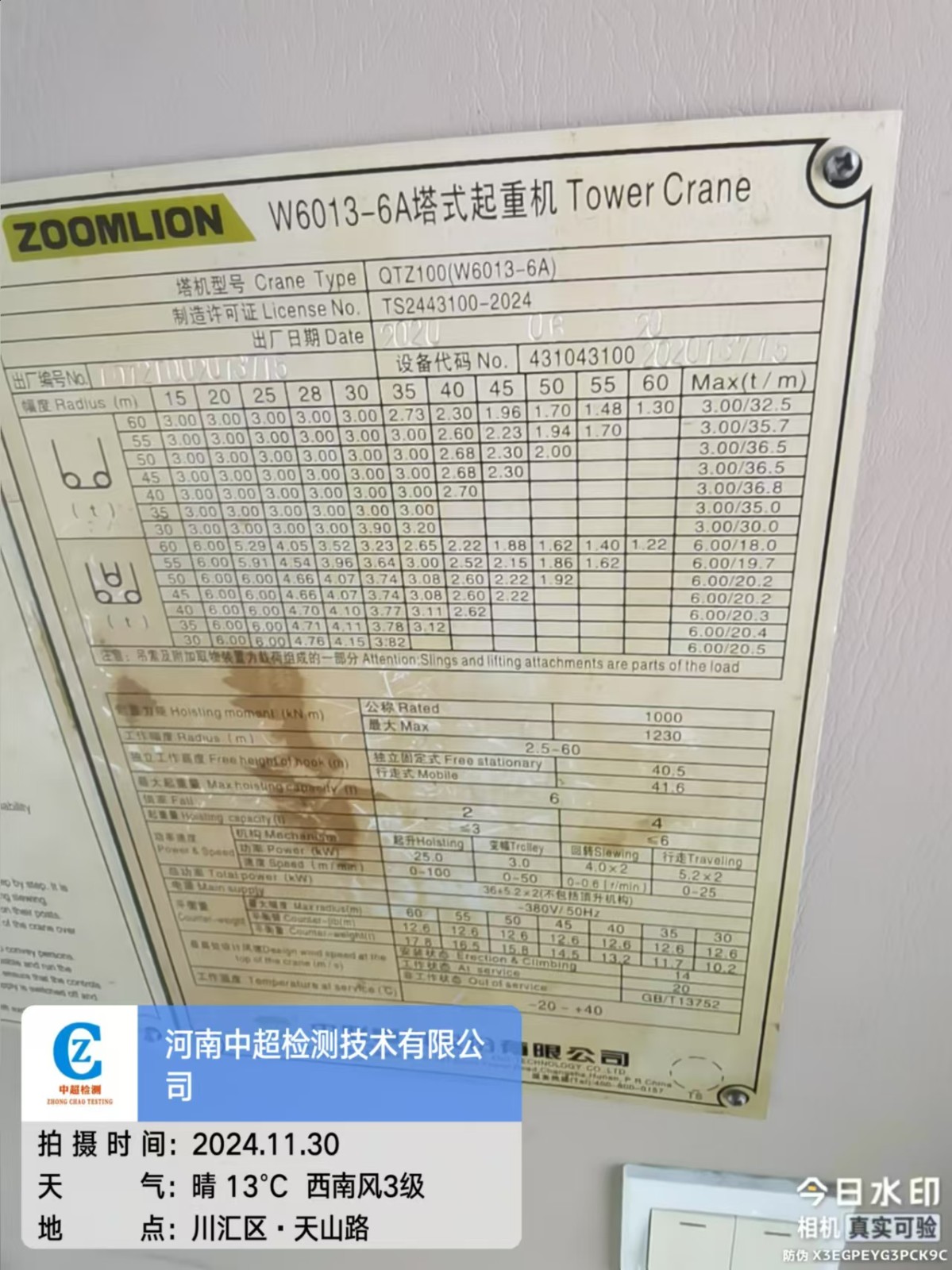 | 出厂编号:1012T002013715 | |
