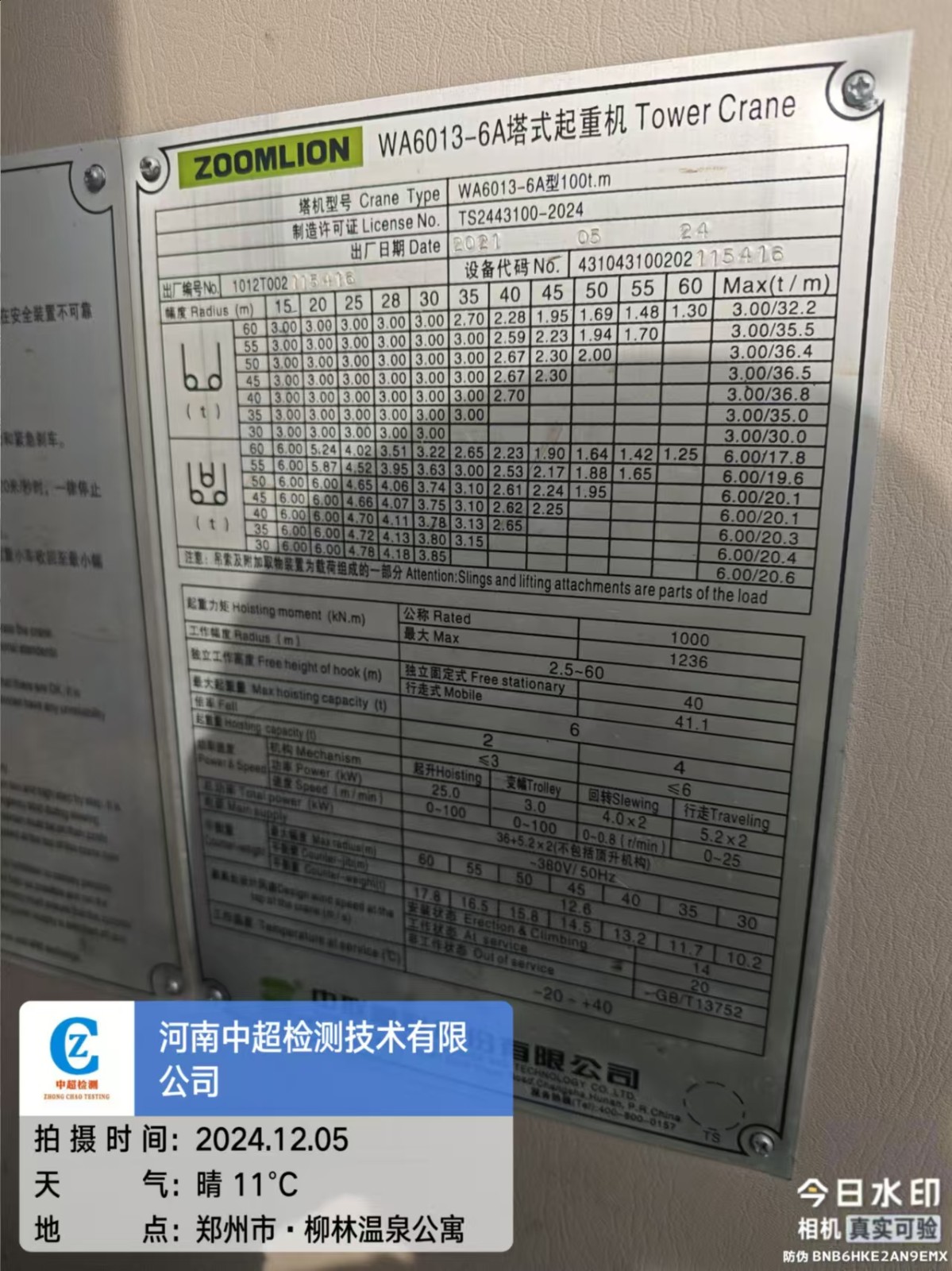 | 安装单位:开封市鼎泰建筑设备租赁有限公司 | |