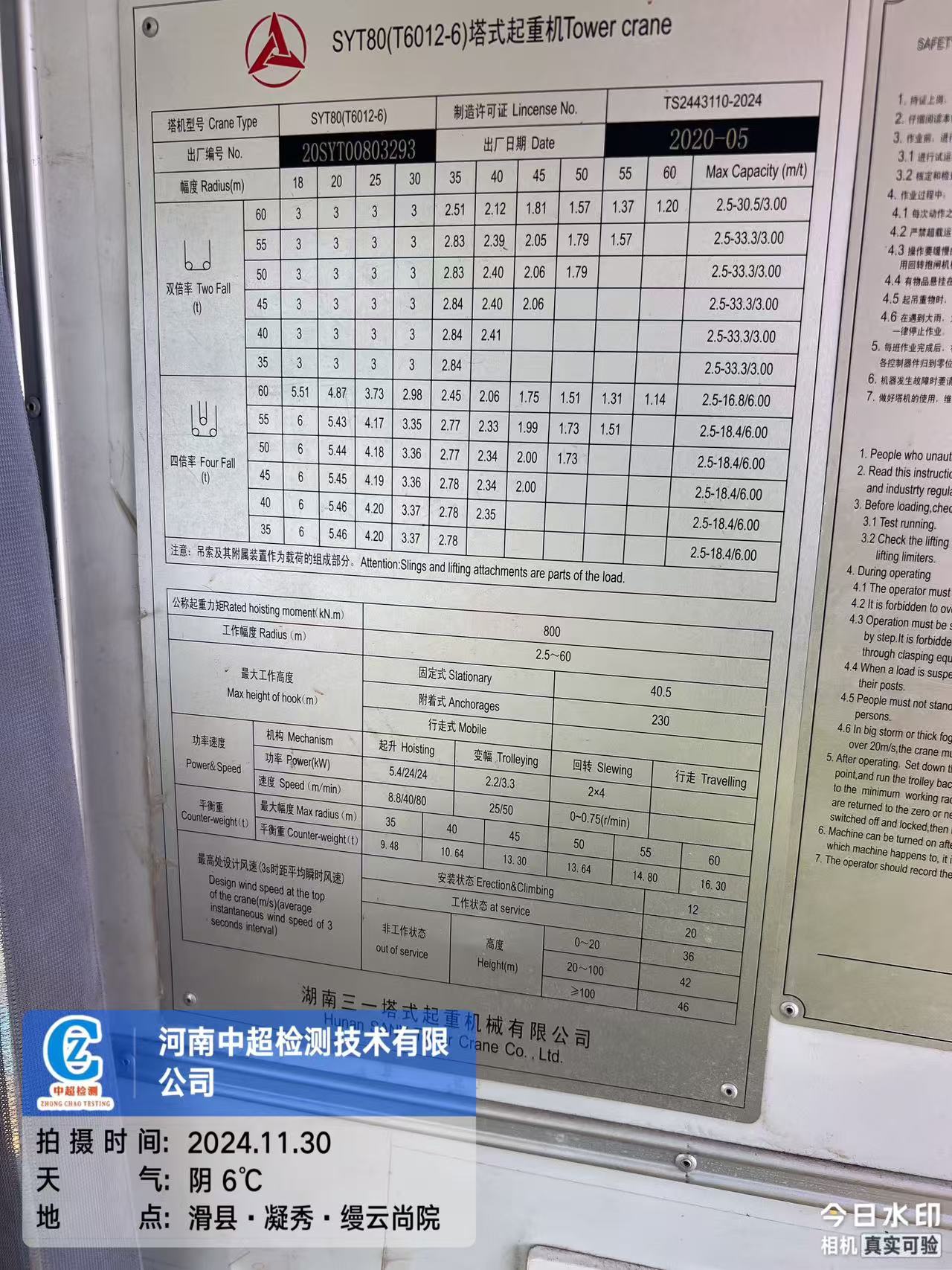 制造单位:湖南三一塔式起重机械有限公司