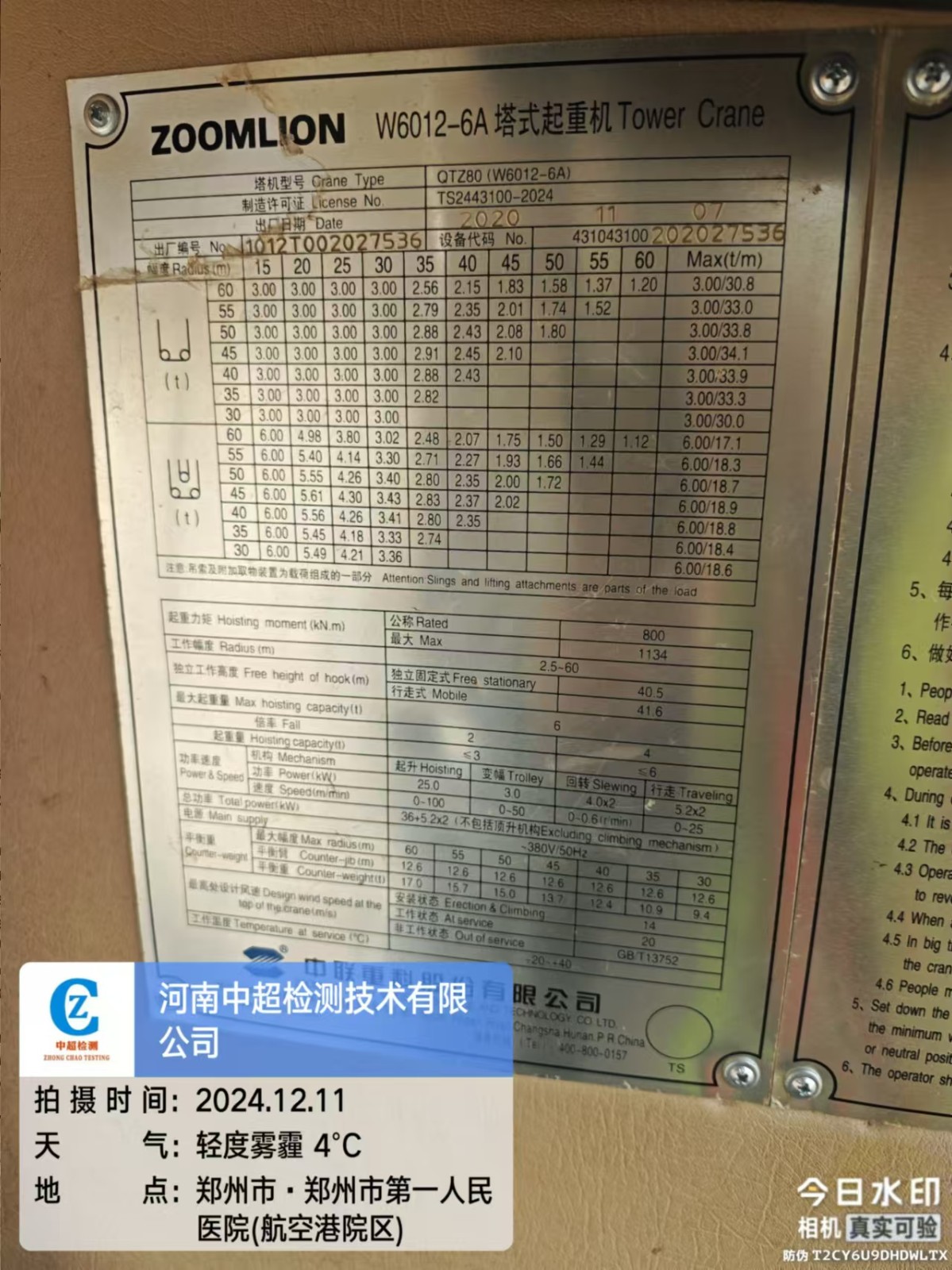 | 出厂编号:1012T002027536 | |