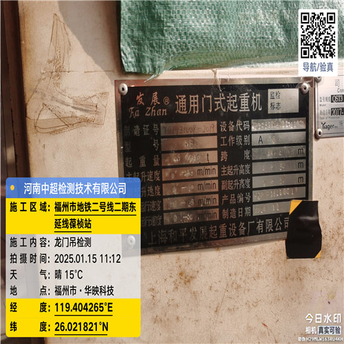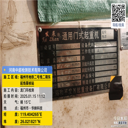| 工程名称:福州市轨道交通2号线东延线一期地下空间(葆桢路站至儒江站区间)1号门吊 | |