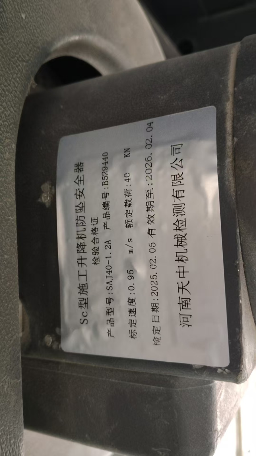 | 使用单位:河南北众建筑工程有限公司 | |