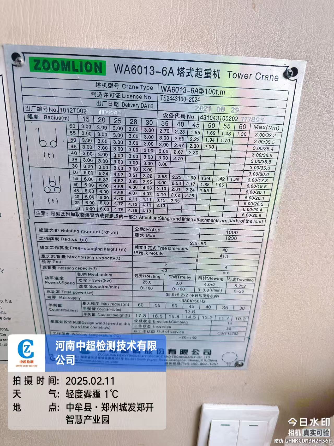 | 工程名称:城发郑开智慧产业园一期项目4#塔吊 | |