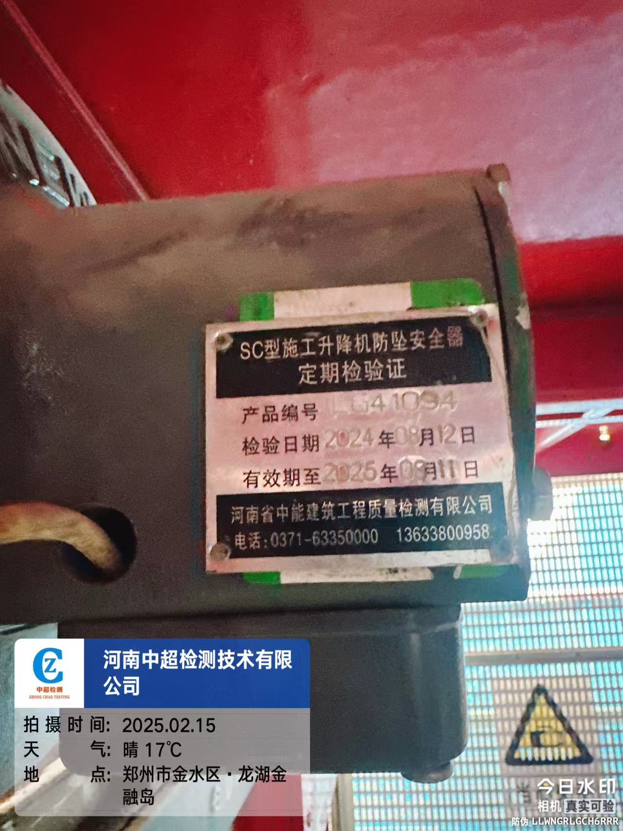 | 工程名称:中原证券大厦项目6#楼电梯 | |